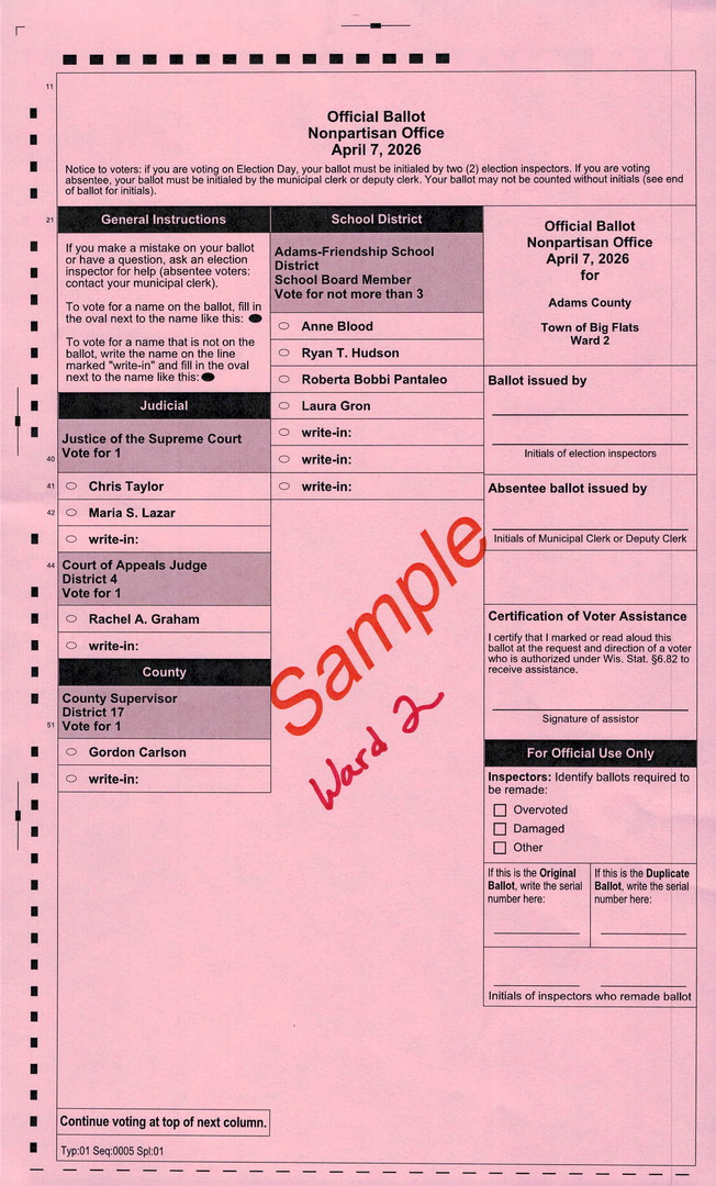TOWN OF BIG FLATS, ADAMS COUNTY WISCONSIN